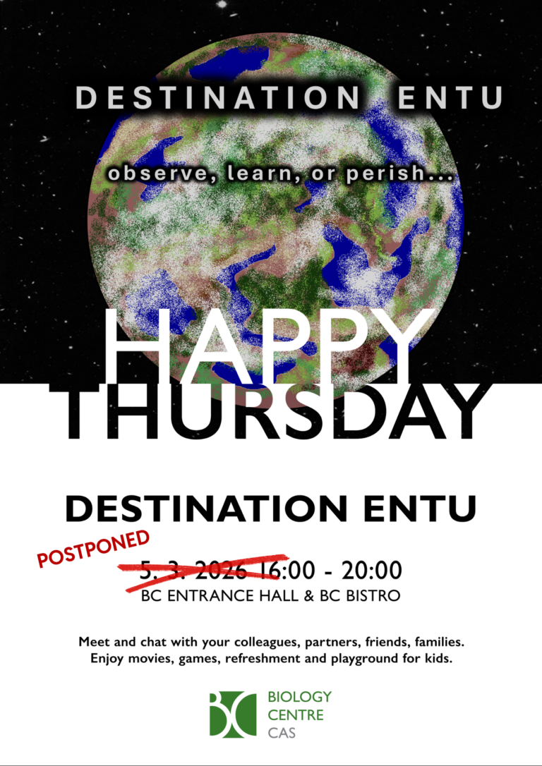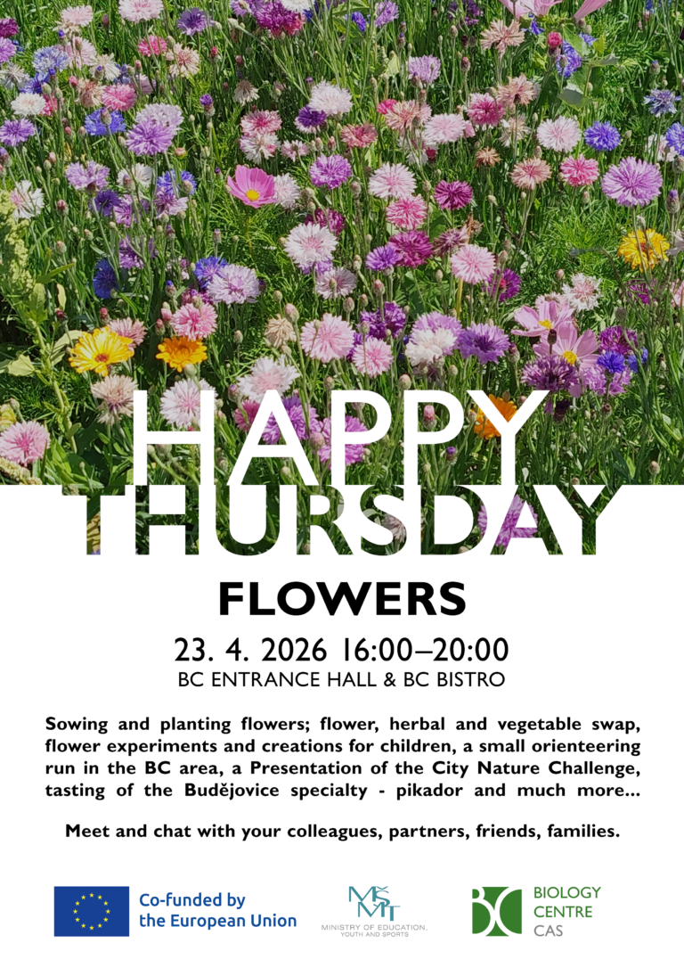 Happy Thursdays are an opportunity to meet at the end of the month, chat, and get to know your colleagues better—those you share a building with, those you pass in the hallway, in the cafeteria, in the bistro queue, and maybe even those you haven’t met yet. The Biology Centre and the University of South Bohemia form one organism composed of scientists, teachers, students, technicians, and administrative staff—let’s meet regularly and inspire each other!